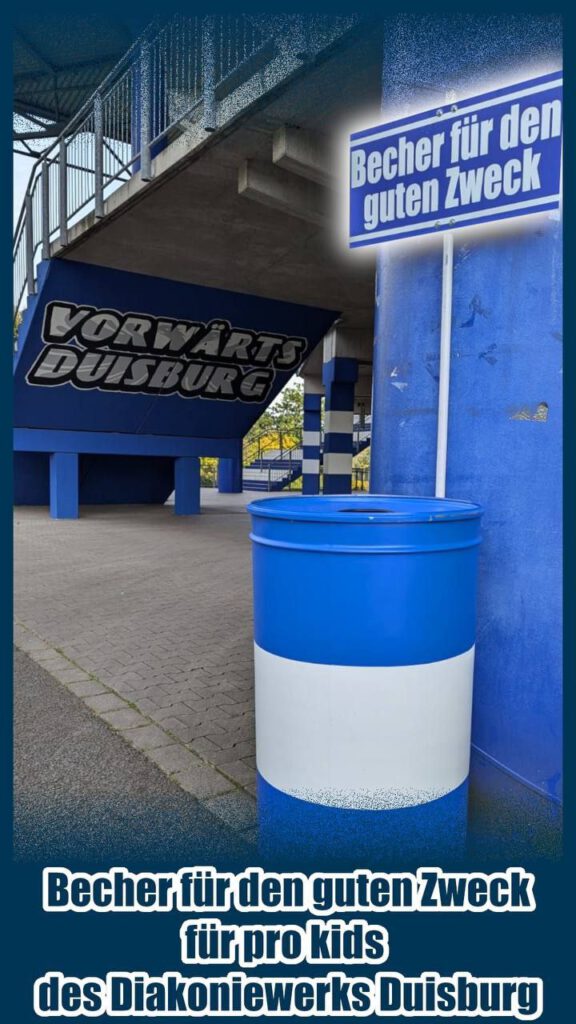 Das Streetwork- und Kontaktcafé pro kids des Diakoniewerks Duisburg ist seit 22 Jahren eine Anlaufstelle für Kinder, Jugendliche und junge Volljährige in Duisburg-Mitte, deren Lebensmittelpunkt die Straße ist. Viele haben keinen Kontakt mehr zur Familie, können oder wollen keine Hilfen des Jugendamtes nutzen und stehen oft ohne finanzielle Unterstützung da. Pro kids schafft einen geschützten Raum, frei von Drogen und Gewalt, in dem die Jugendlichen neben einer warmen Mahlzeit zum Beispiel auch duschen und Ihre Wäsche waschen können. Dem Team geht es vor allem darum, Vertrauen aufzubauen, Perspektiven zu eröffnen und den Jugendlichen respektvoll und ohne Vorurteile zu begegnen. Darüber hinaus bietet pro kids praktische Lebenshilfe, berät und vermittelt, wenn gewünscht, in das Hilfesystem. Pro kids erhält keine Regelfinanzierung seitens der Stadt oder staatlicher Institutionen und finanziert sich zu 100% aus Spenden. Der tägliche Betrieb wird durch das Engagement von ehrenamtlichen Helferinnen und Helfern aufrechterhalten. Mit den Becherspenden der nächsten Spiele wollen wir, gemeinsam mit euch, einen kleinen Teil dazu beitragen. Wer sich darüber hinaus informieren will oder anderweitig helfen möchte, findet unter https://www.diakoniewerk-duisburg.de/beratung-hilfe/angebote-fuer-kinder-jugendliche-und-familien/streetwork-und-kontaktcafe-pro-kids/ weitere Infos.